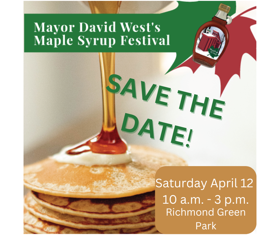 Spring is around the corner and that means it is time for my annual Maple Syrup Festival. Mark your calendar for April 12, 2025 from 10 a.m. to 3 p.m. at Richmond Green Park and I’ll look forward to seeing you then for a taste of maple syrup, a yummy pancake breakfast, and fun for the whole family.