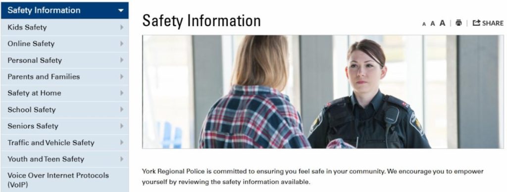 As we start a new year, it is a good time to re-examine our own role in the safety of our household and our community. The York Regional Police say “Community Safety is a Shared Responsibility” and they offer residents many supportive and educational tools and programs.