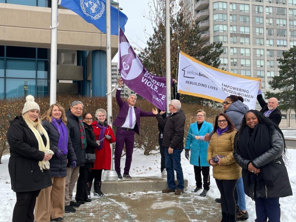 Raising flags in support of Ending Gender Based Violence with our local agencies committed to this important work.