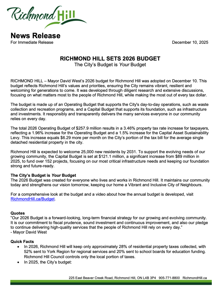 Working together with my City Council colleagues, City staff, residents, community groups, businesses, and officials from other levels of government, I am determined to always listen, and advocate for the best interests of Richmond Hill.